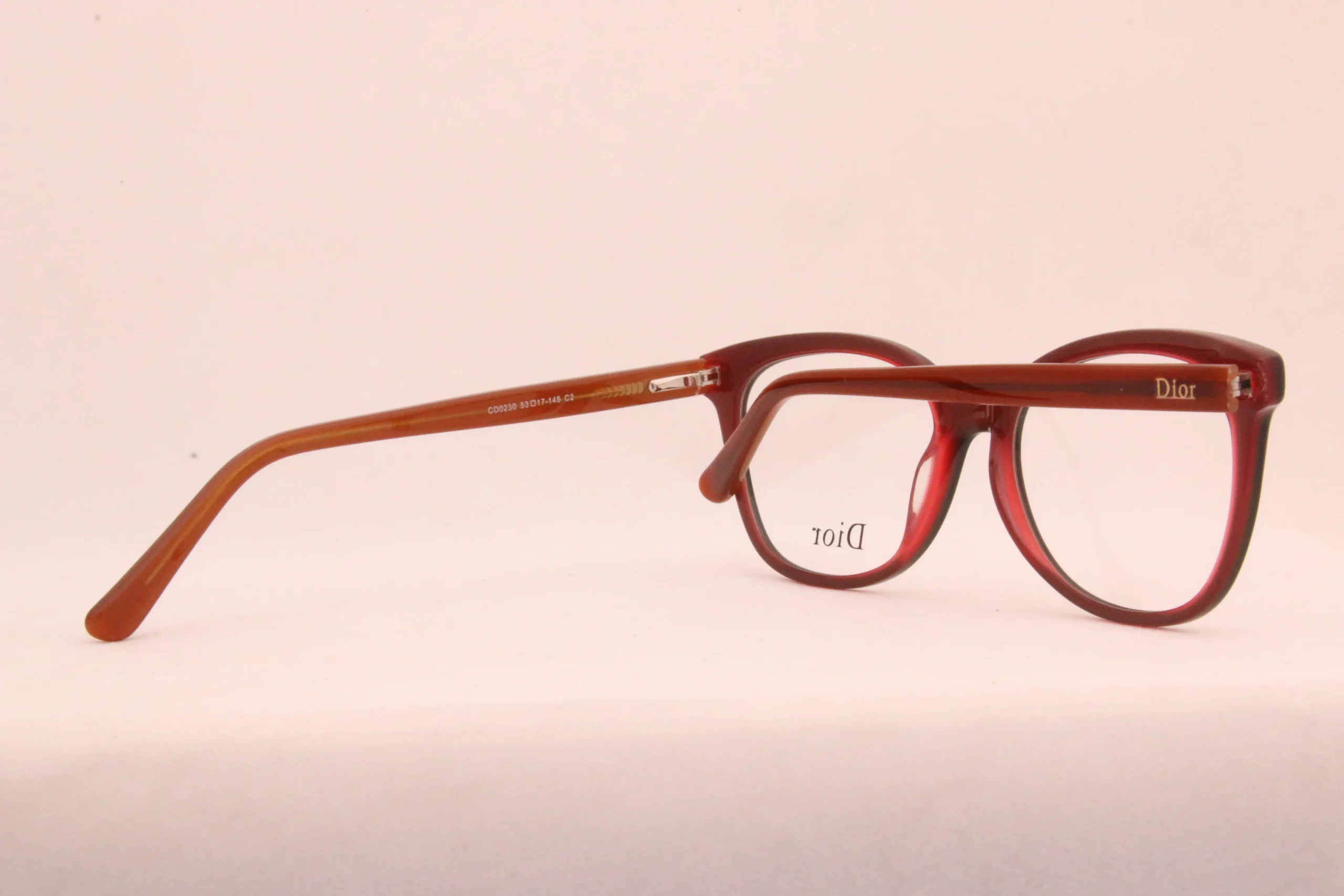 فریم عینک طبی دیور یا Dior متعلق به شرکت فرانسوی تولیدکننده کالاهای لوکس است که در زمینه تولید لباس، وسایل لوکس، جواهرات و عینک فعالیت می‌کند. میان طرح‌های مختلف این عینک، نمی‌توانید شیشه‌های بسیار تیره یا قاب‌های ضخیم و بد شکل پیدا کنید! محصولات دیور در رنگ‌های خاص و طرح‌های ظریف و جالب توجه تولید می‌شود. بیشتر قاب‌های آن از نوع فلز یا ‌پلاستیک استات مرغوب و یا کائوچوی فراوری شده بسیار با کیفیت می باشد. کمپانی DIOR سال هاست دفاتر اصلی خود را به جز فرانسه در ایتالیا، آلمان و چین نیز دایر کرده است تا قدرت رقابتی بالای خود را در سراسر دنیا به رخ بکشد. فریم عینک طبی دیور مدل CD0230C2 از کالکشن رنگ C2 توسط نمایندگی اصلی در ایتالیا طراحی و در کارخانه دیور تولید شده است. فریم و دسته های این عینک از استات و TR90 مرغوب و درجه یک تولید شده است. این فریم عینک طبی از سری تولیدات اختصاصی و سفارشی این کمپانی به شمار می رود و به همین دلیل ارزش خرید بالایی دارد.